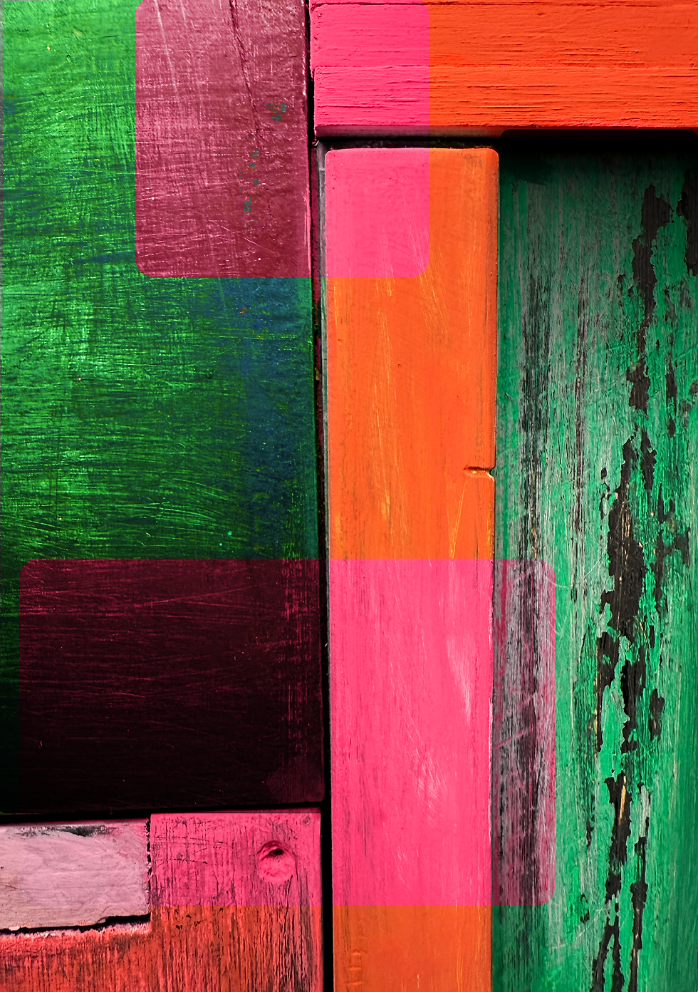 A vibrant celebration of texture, timber and tone. Colour and Grain explores the meeting point between bold colour and natural material. Each piece in the collection transforms weathered wood and layered paint into striking abstract compositions, reimagined