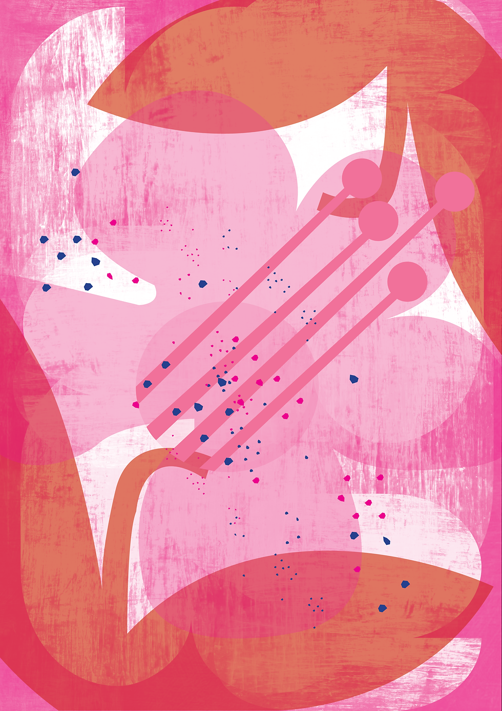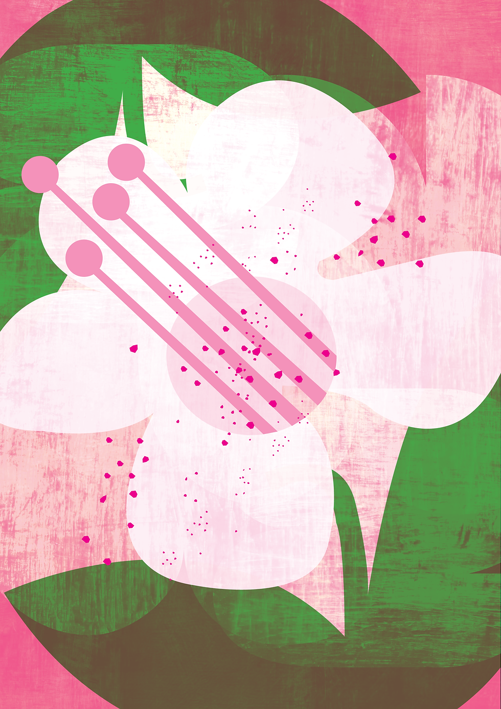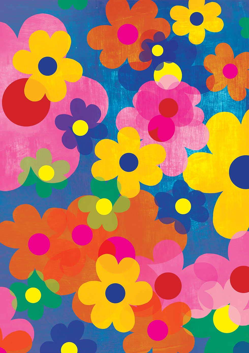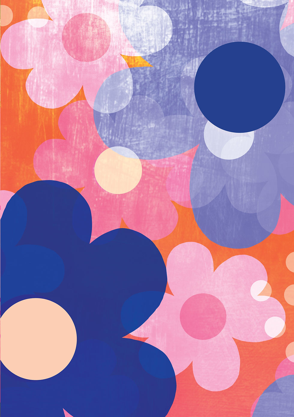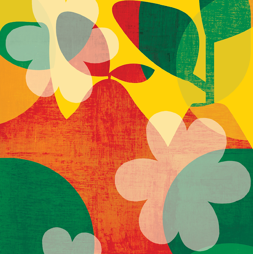 Fruit, Flora & Fauna is a vibrant series celebrating orchards, fruit, and flowers through bold shapes, layered textures, and rich seasonal palettes. Oversized blossoms and playful transparencies bring a painterly energy, while the balance of abstraction and graphic clarity highlights nature’s forms in colour, texture, and rhythm.